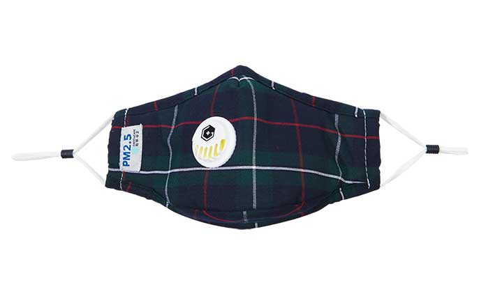 成人純棉立體帶閥口罩-黑綠格子